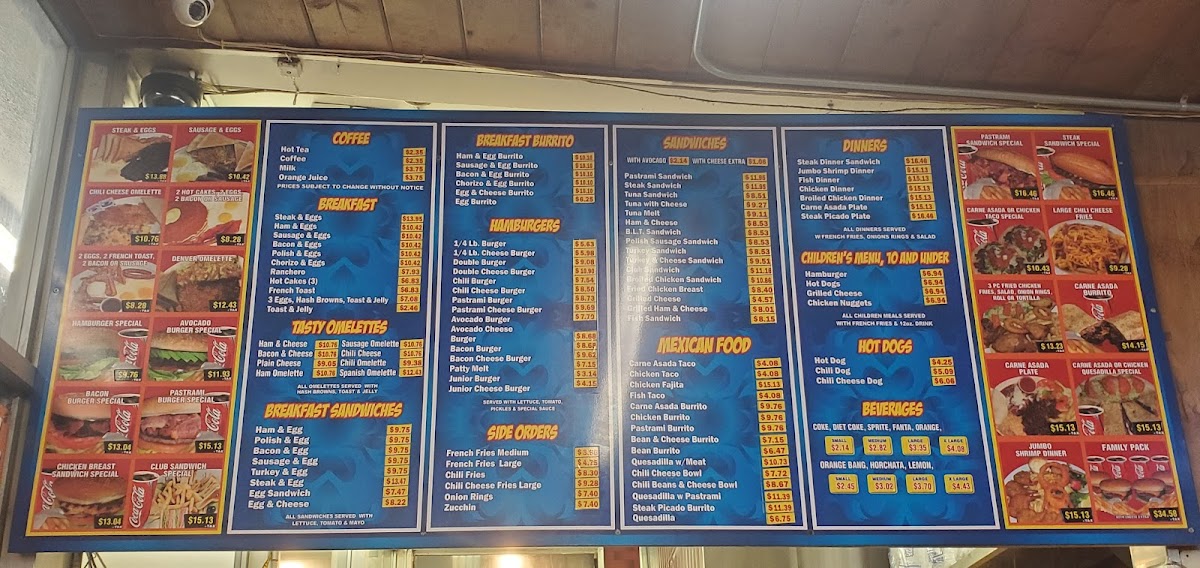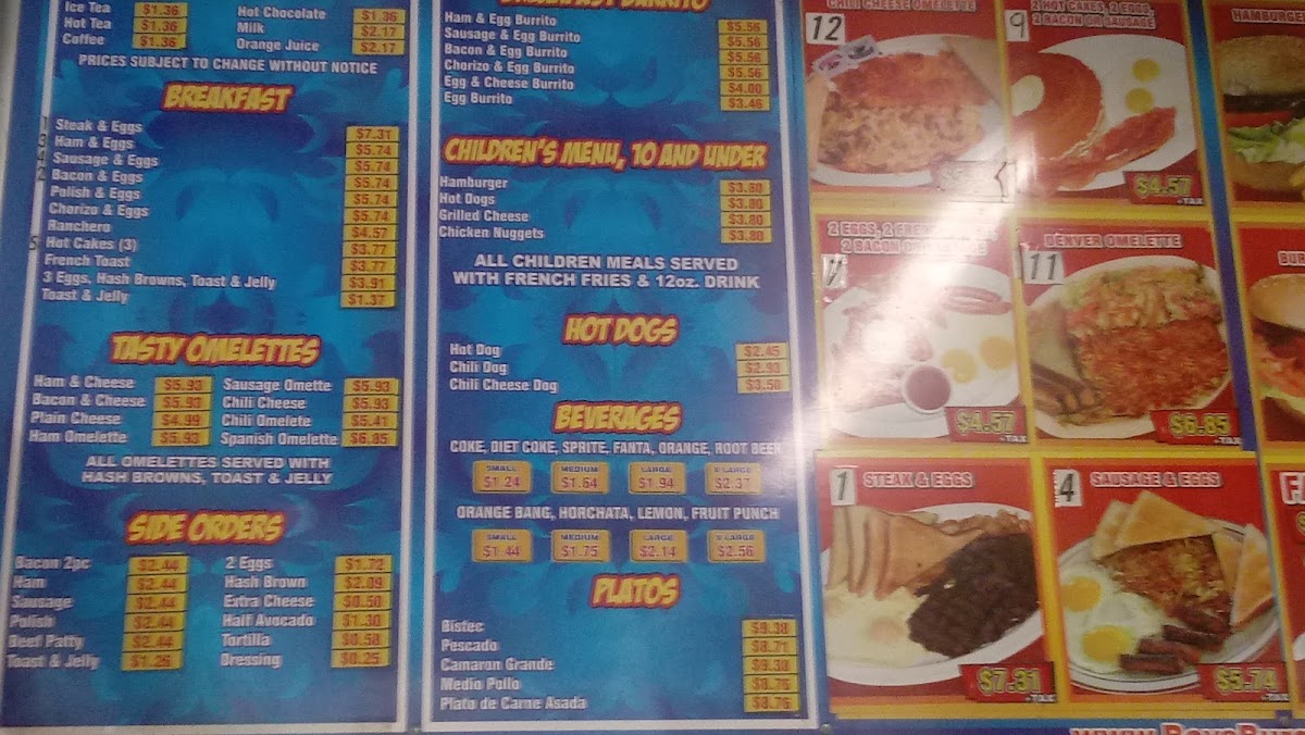The menu provides choices suitable for breakfast as well as lunch or dinner, accommodating quick orders and casual dining experiences. Visitors can expect traditional fast food fare with an emphasis on hearty, easy-to-serve meals.